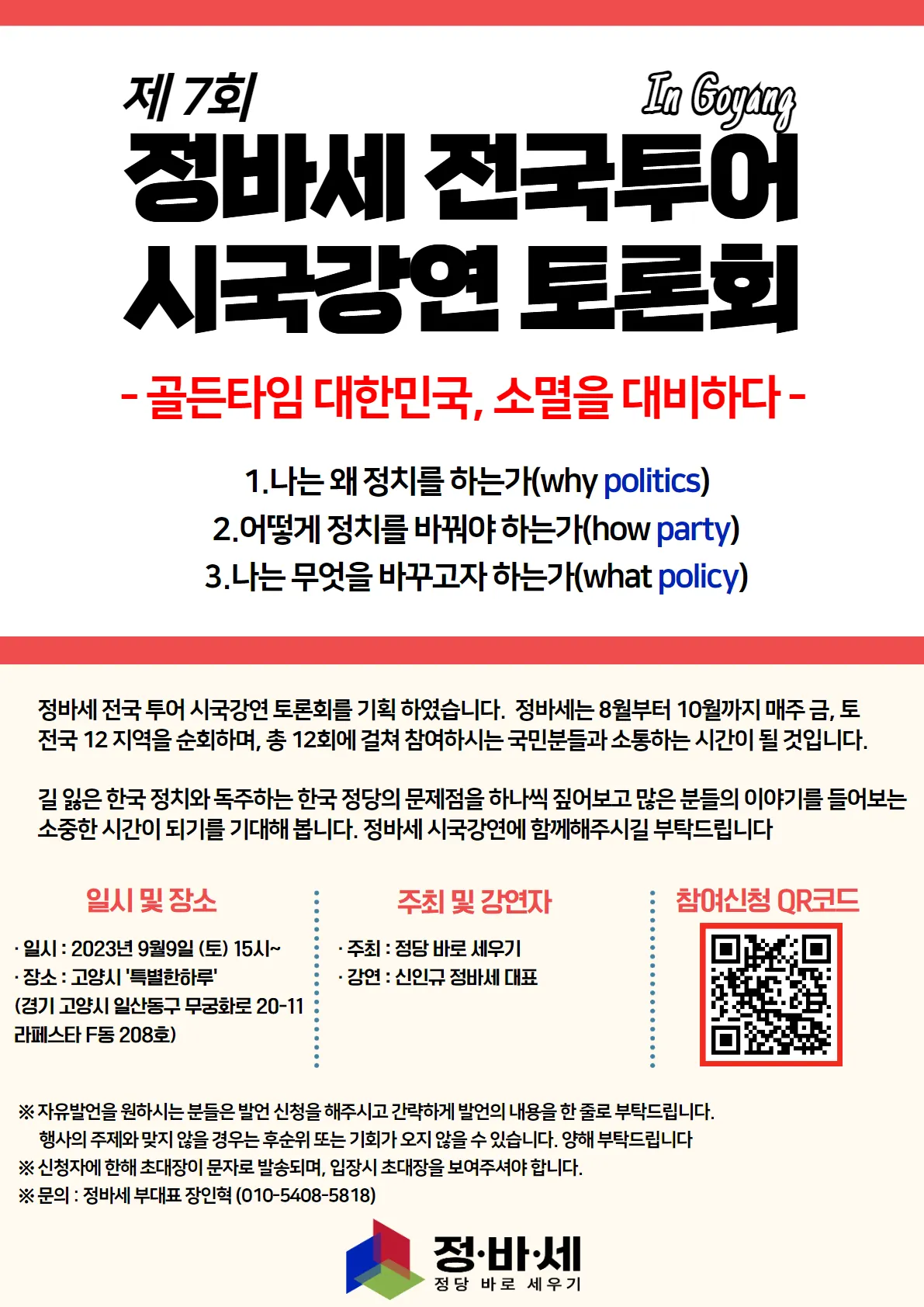 ※ 문의 : 정바세 부대표 장인혁 (010-5408-5818)
